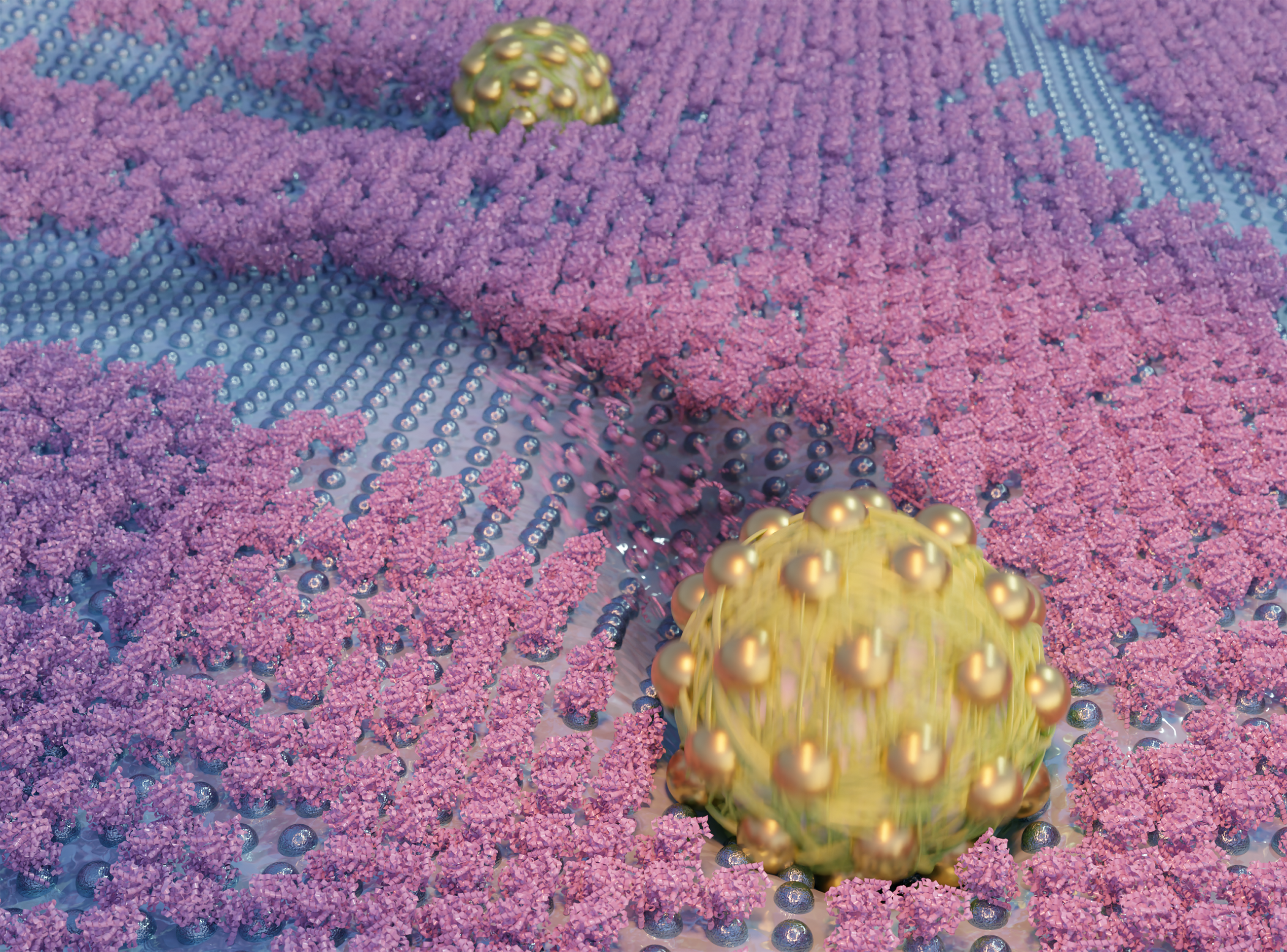 Banner caption: Artist representation of our spherical rolling motors. Art credit: Hassan A. Tahini from sciencebrush.design